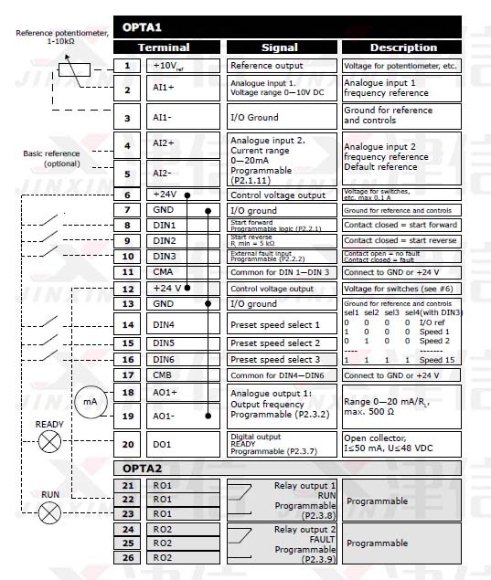 VACON偉肯20系列變頻器接線圖